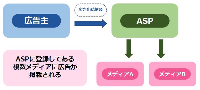 ASPはアフィリエイトサービスプロバイダーの略で、広告主とメディアをつなぐサービスを提供している企業です。